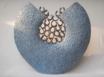 2016Vorm hol opgebouwd, structuur aangebracht,engobe beschilderd waarover transparant glazuur.