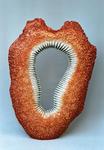 2015Hol opgebouwd uit plakjes klei, paddestoelstruktuur, engobe beschilderd, glazuur